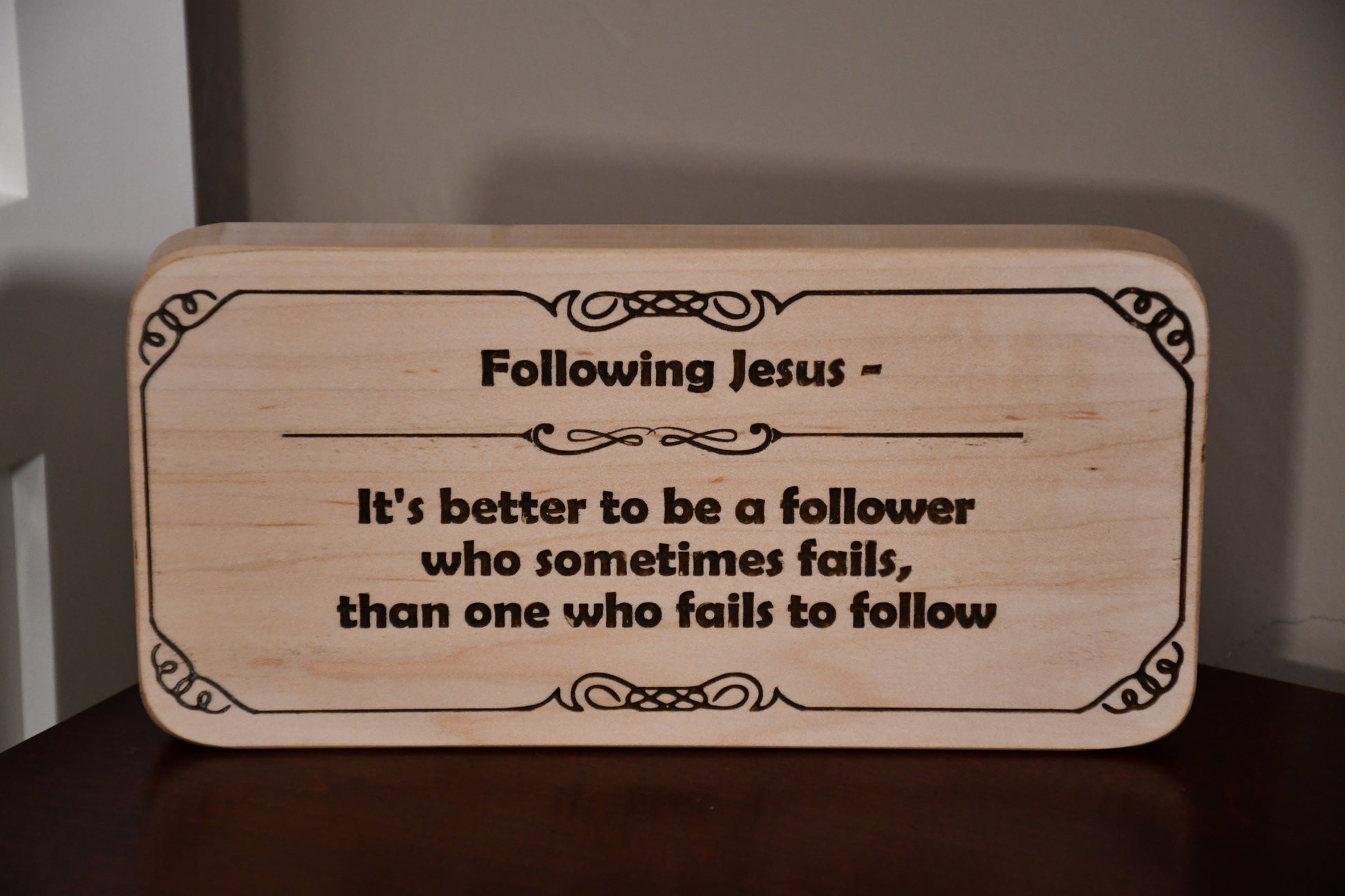 Following Jesus isn't always easy so it's nice to remind yourself through this encouraging plaque.
