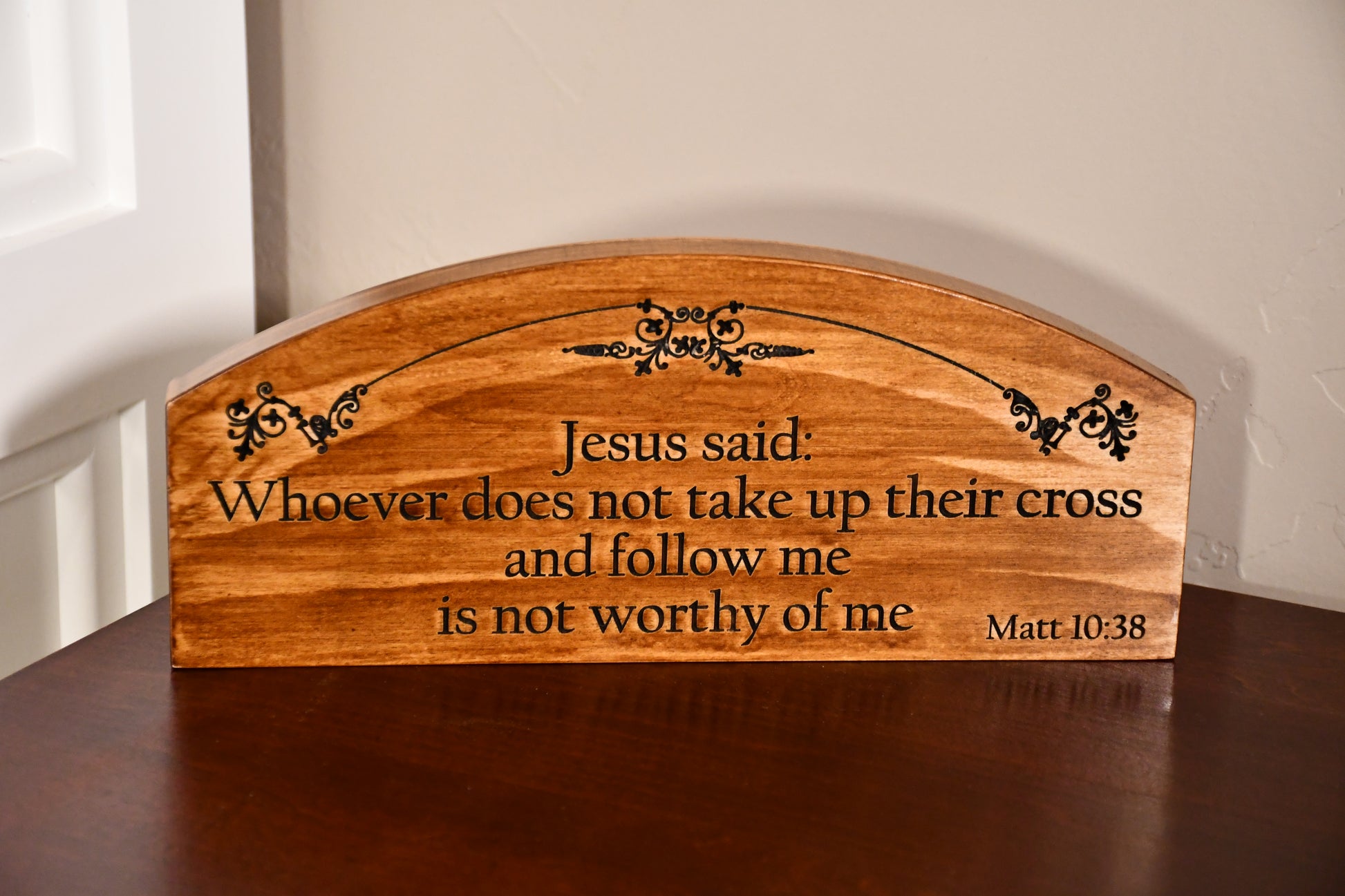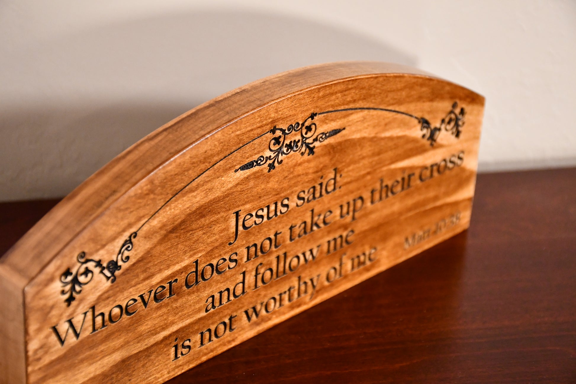 Beautiful, engraved desk or wall plaque reminding us that Jesus calls us to follow Him.